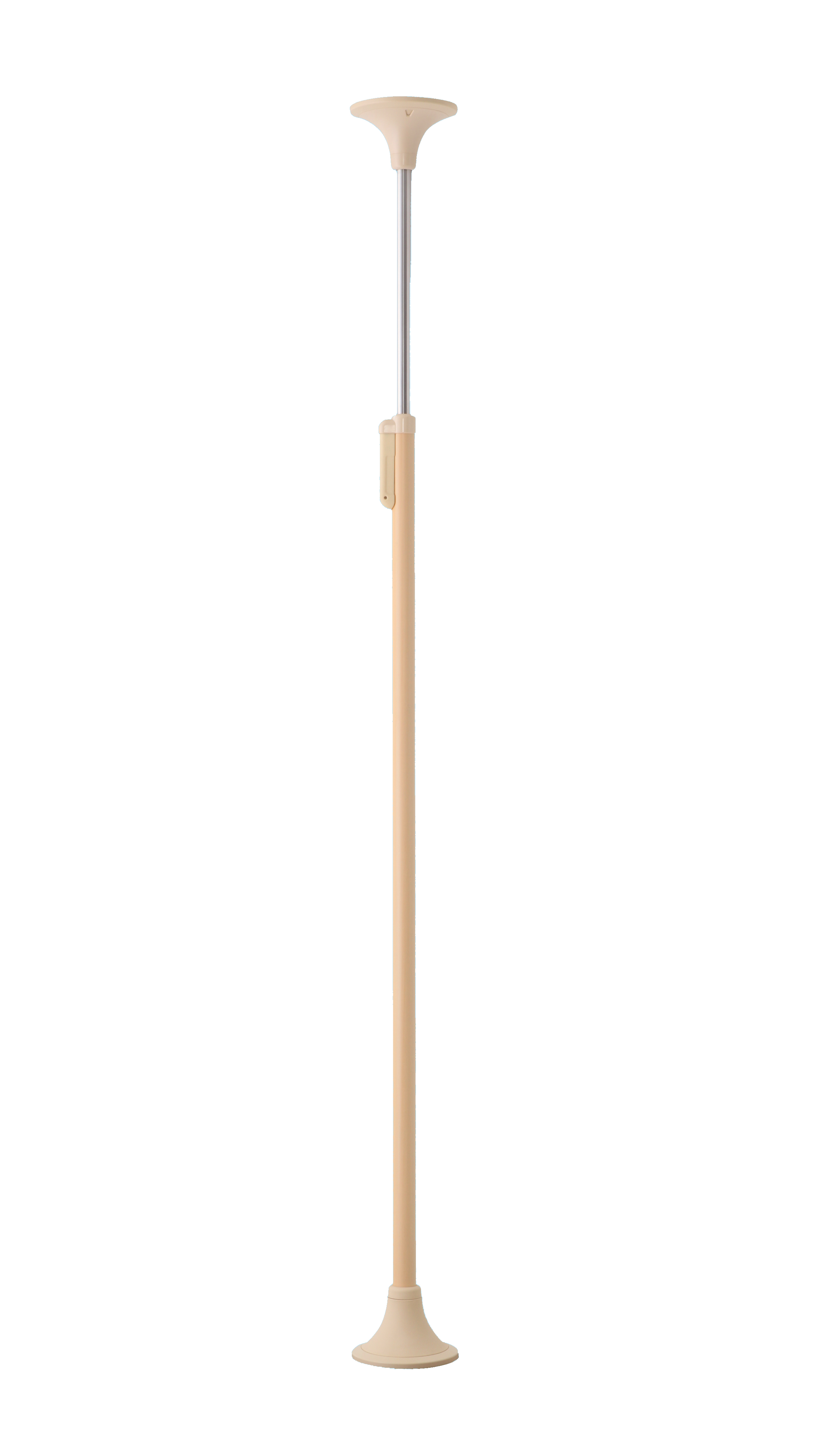 天井に当て、ロックレバーを下げるだけの簡単施工。基本セットをつかんだり、身体を預けるだけでも手すりとして有効です。